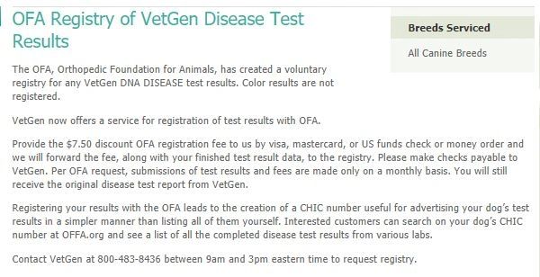 The Orthopedic Foundation for Animals Inc. Please complete sign and return to Orthopedic Foundation for Animals 2300 E Nifong Blvd Columbia MO 65201-3806 along with laboratory results. If a dog is not listed in the database it is fair to assume that the dog has not been screened for genetic disease by the OFA or.